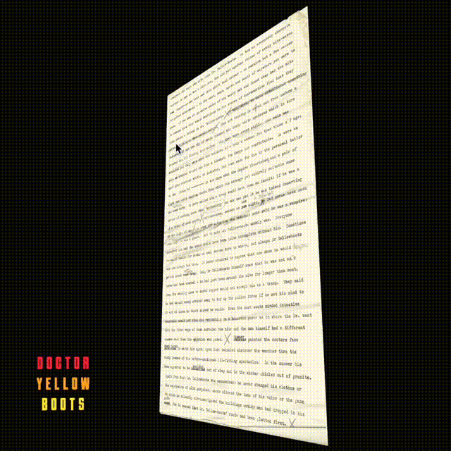 DR. YELLOW-BOOTS is a first-draft, typewritten short story, never touched but for a few pencil edits. There is something very beautiful about the first capture of an idea and in that spirit this text is published without edit.